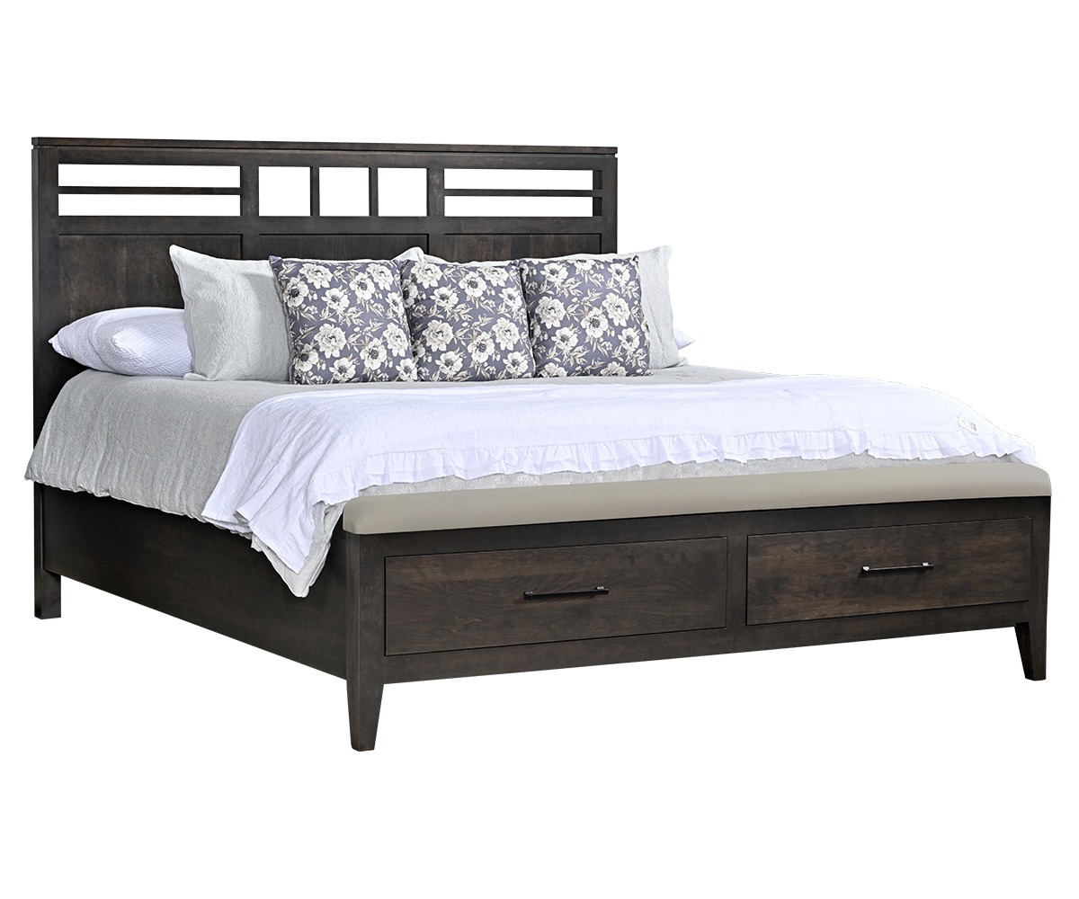 Oslo Panel Bed With Black Inserts, Footboard Storage And Bench by Millcraft